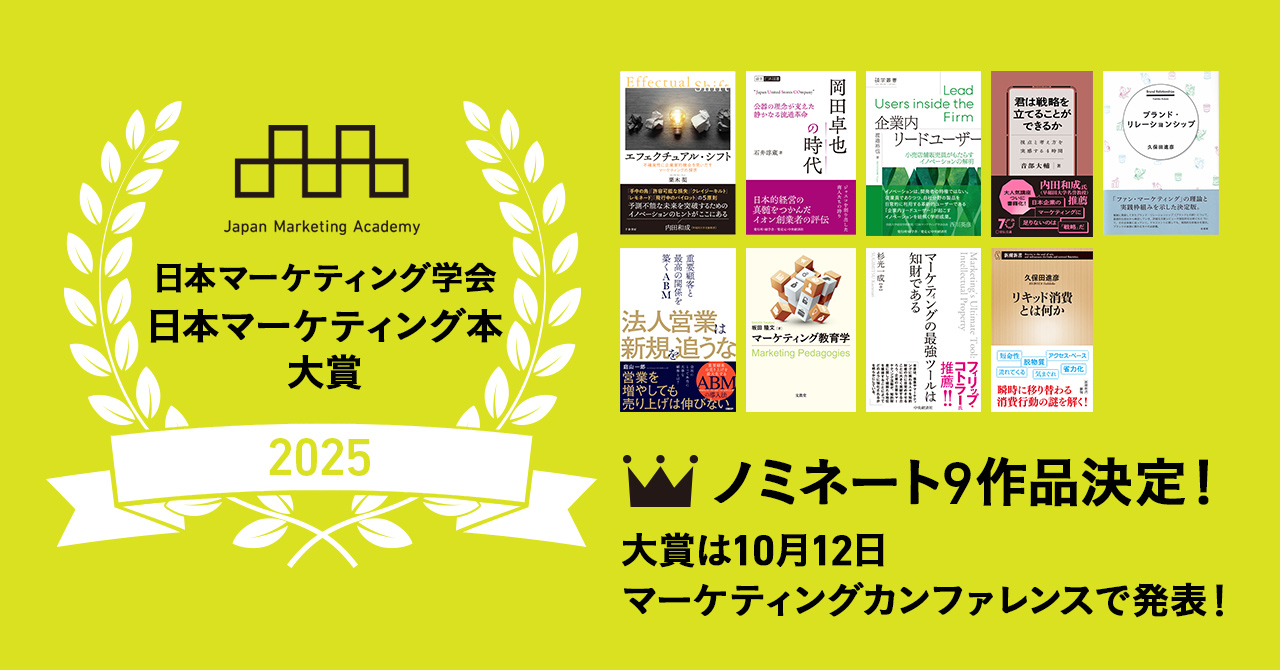 マーケティング理論や実践の普及のため、新たな取り組みとして始まった、日本マーケティング学会員が選ぶ、第8回「日本マーケティング本 大賞2025」のノミネート作品を発表させていただきます。